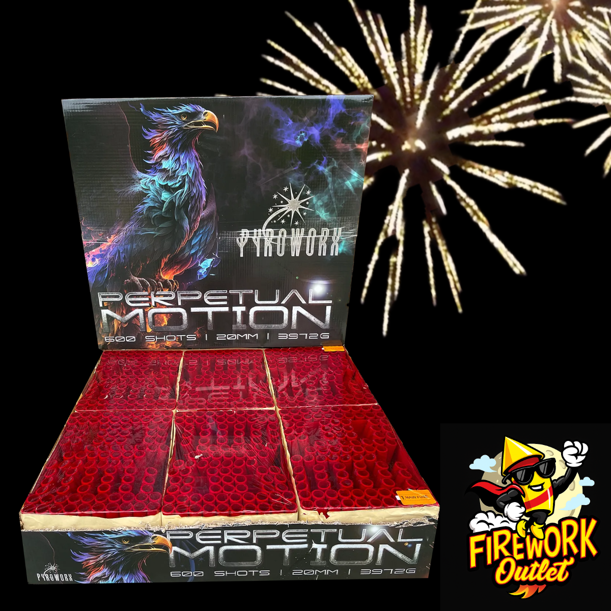 Perpetual Motion lives up to its name with a full four minutes of breathtaking, non-stop performance. This giant compound never pauses, delivering wave after wave of explosive color, crackling effects, and sky-filling bursts from start to finish.