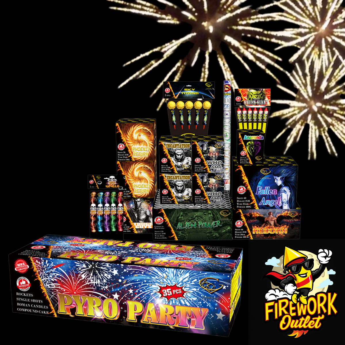 The Pyro Party Crate brings the boom to your bash! Packed with rockets, single shots, roman candles, and more, it’s your all-in-one ticket to a sky full of color and chaos. Light the fuse and watch the night explode in a burst of energy, laughter, and pure party magic. This crate doesn’t just end the night — it owns it.