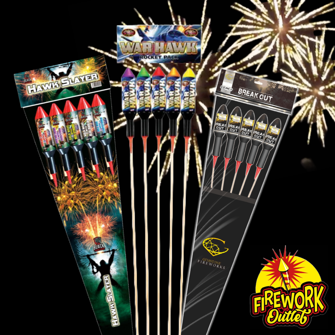 Three incredible packs of rockets in one explosive deal! First up, the legendary War Hawk—so popular over the years that it’s become a must-have for any firework enthusiast. Next, the powerful Hawk Slayer, equally as impressive as the War Hawk—but we’ll leave that for you to decide! Finally, the stunning Blue Top Solar Flare by Primed Pyrotechnics—my personal favorite, delivering top-tier quality with an unforgettable impact.
